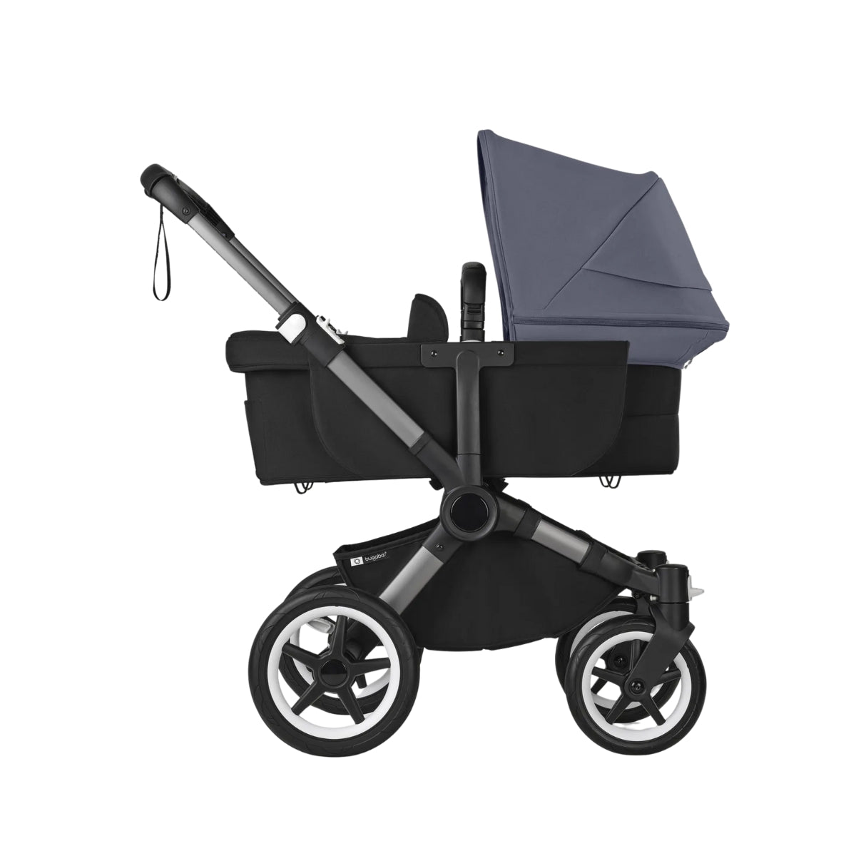 Carrinho de bebê Bugaboo Donkey 5 Mono 2 em 1 - Capota solar azul tempestuosa, tecidos pretos meia-noite, chassi grafite