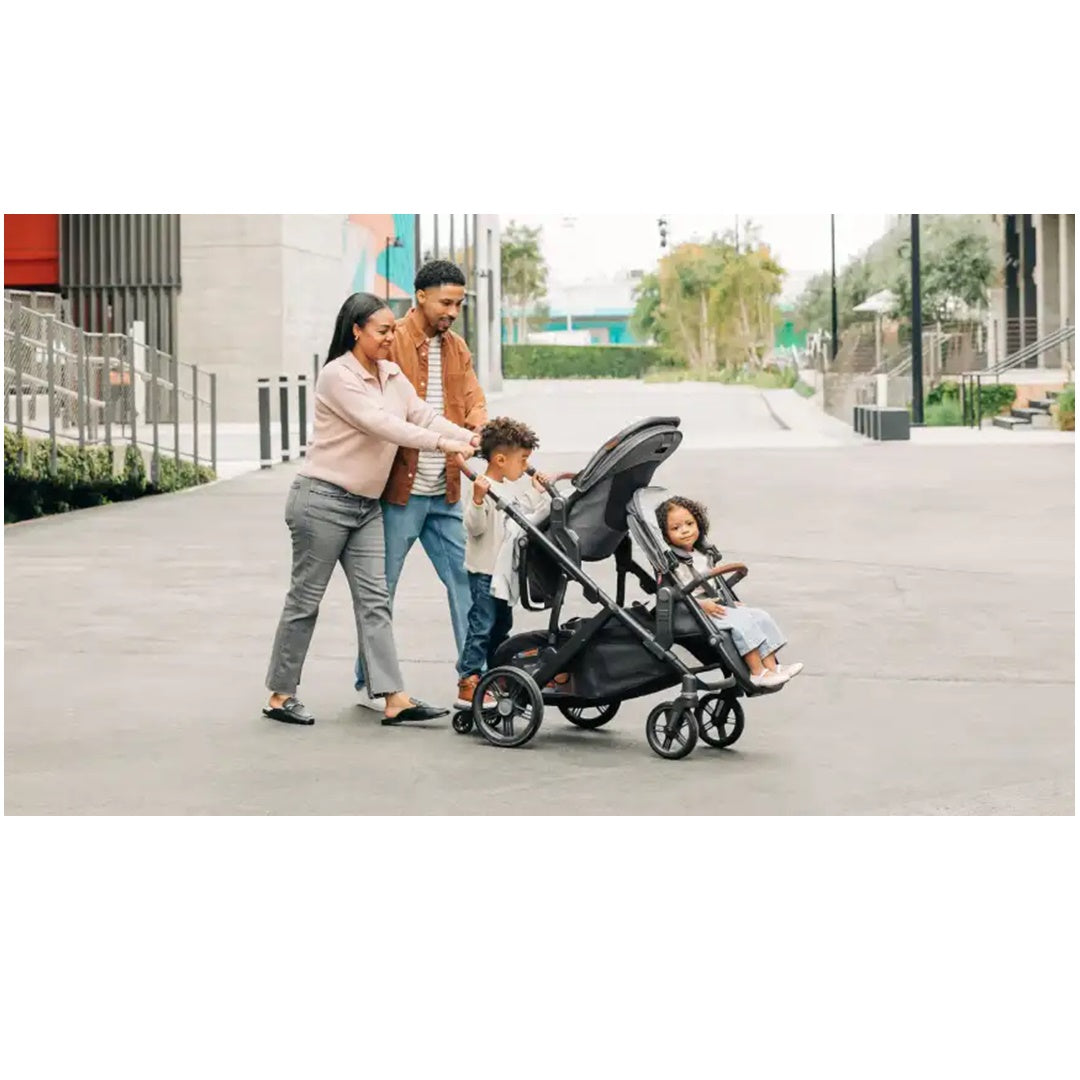 - Capacidade para transportar até três crianças com os acessórios assento extra e plataforma de carona.
