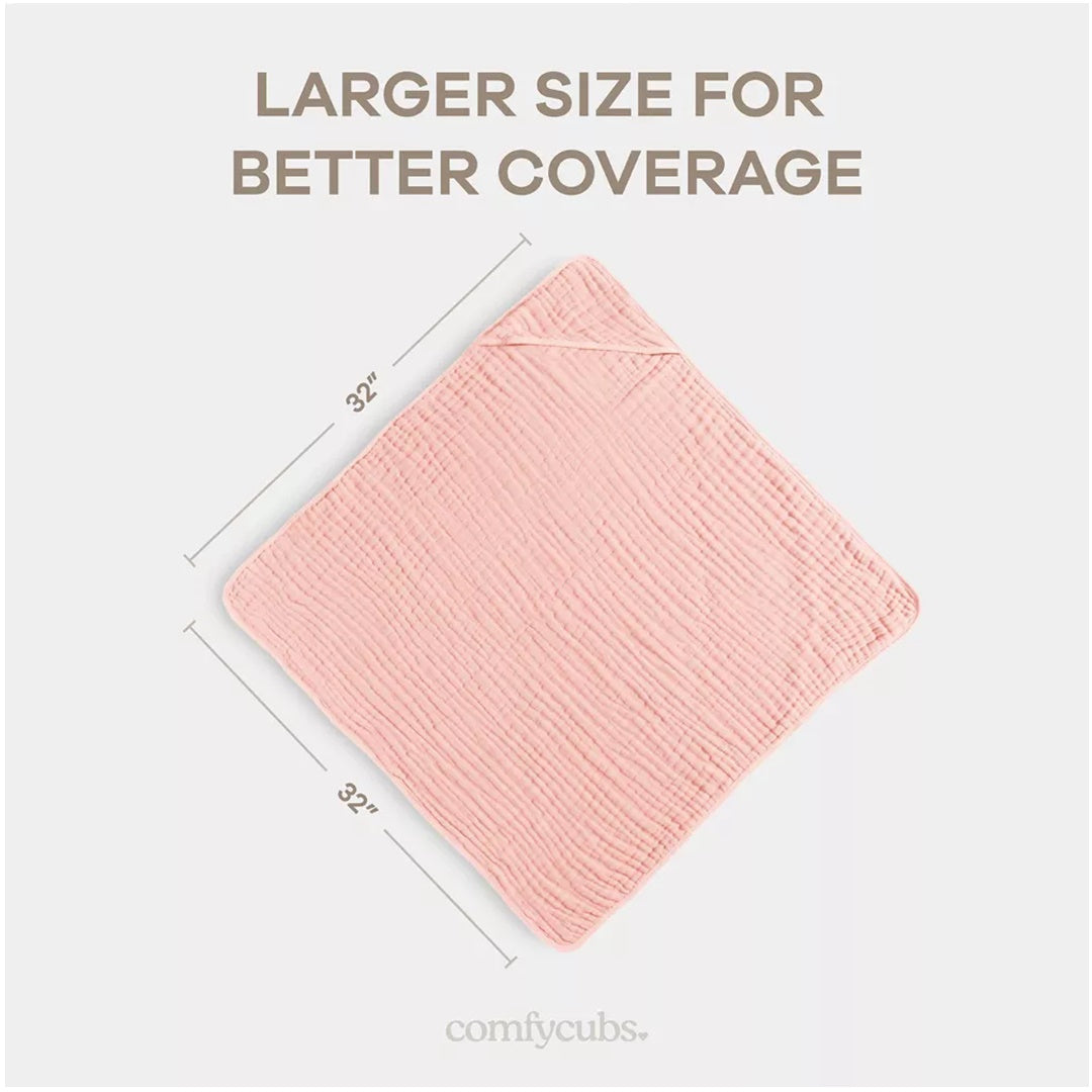 Generous Size for Growing Babies: The Comfy Cubs hooded towel measures a Large 32 x 32 inches, ensuring excellent coverage from newborns to toddlers. Its larger size offers plenty of room for your baby to grow into, providing lasting comfort and warmth as they transition through each stage of their early years.