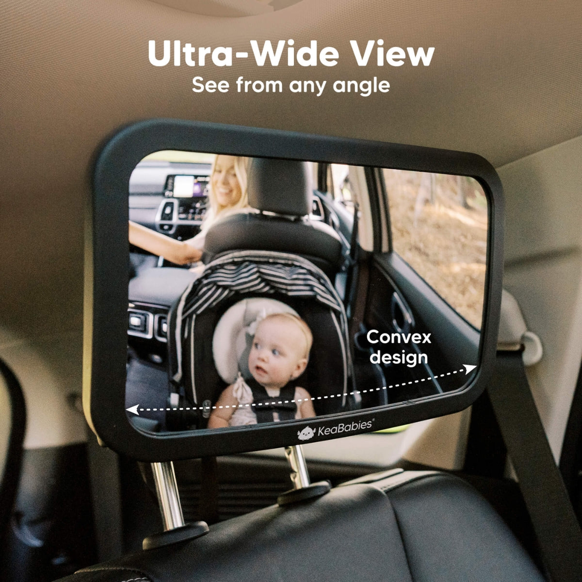 Espelho para cadeirinha de bebê KeaBabies – Visão de 360° à prova de quebra, fácil instalação, serve na maioria dos carros, acessório ajustável e durável para monitoramento seguro no veículo.