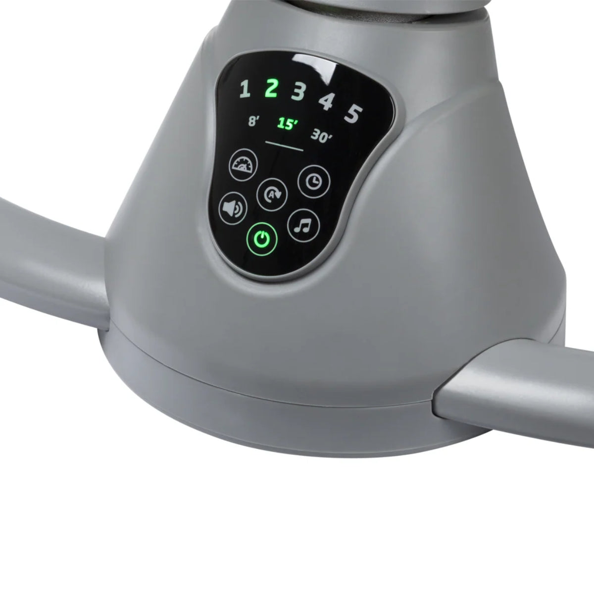 Swing smartly in style with the Cassia Swing, designed to give you freedom and flexibility while comforting your little one. The automatic motion detection (with on/off button) senses when your infant needs extra soothing and activates the swing. Its built-in touch screen panel allows you to select from 5 swing speeds, plus 12 melodies and nature sounds to keep baby relaxed and entertained. The 360⁰ rotation helps you both feel connected and engaged. At only about 10 lbs., the Cassia Swing is easy to transport from room to room.
