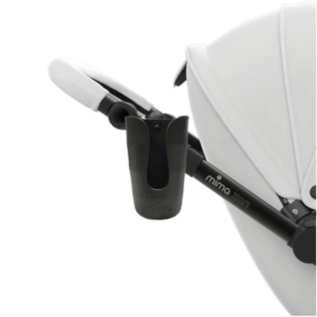 O porta-copos Mima é facilmente preso aos carrinhos de bebê, mantendo as bebidas ao alcance dos pais e das crianças durante caminhadas ou passeios.