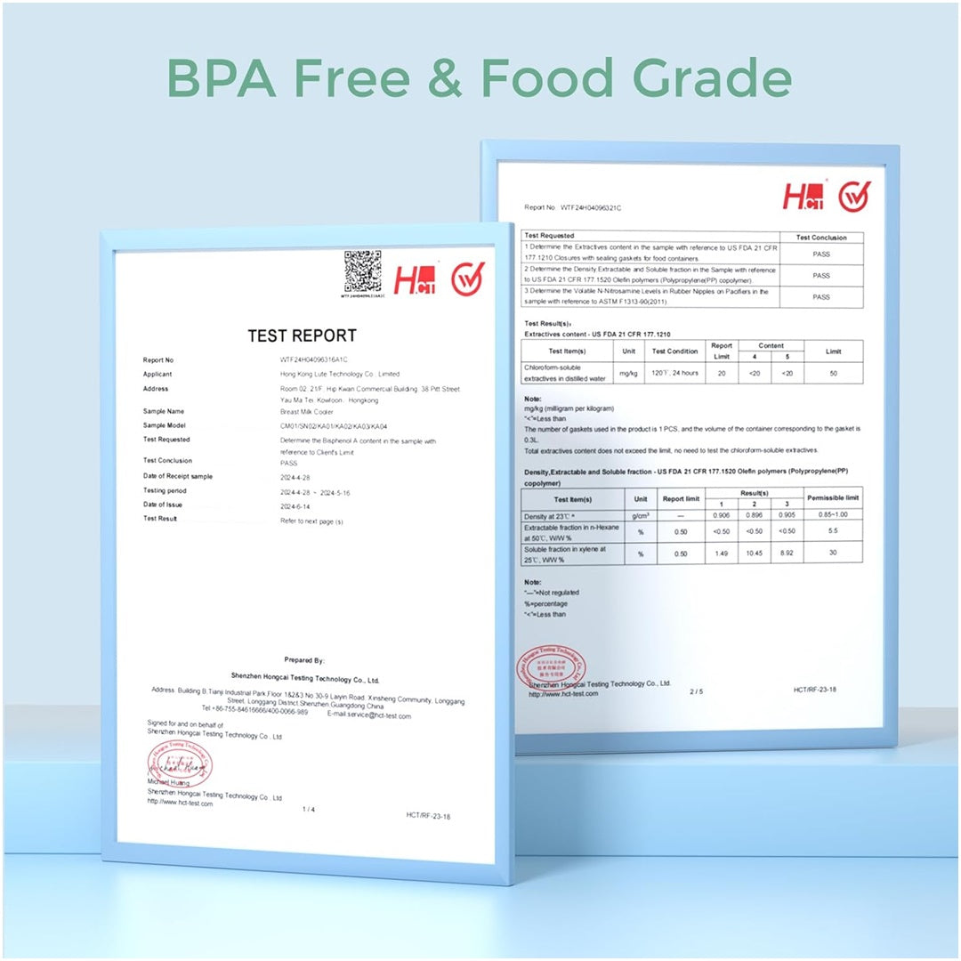 O cooler de leite materno Momcozy é testado em grau alimentício e livre de BPA, garantindo sua segurança durante todo o armazenamento do leite materno.