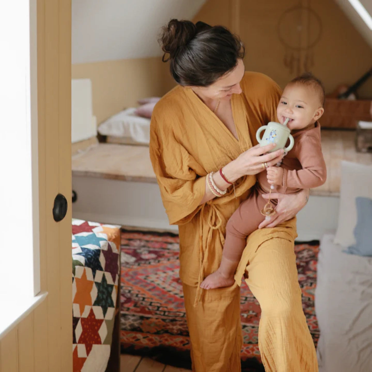 About Mushie Silicone Training Cup + Straw Bluey Sage