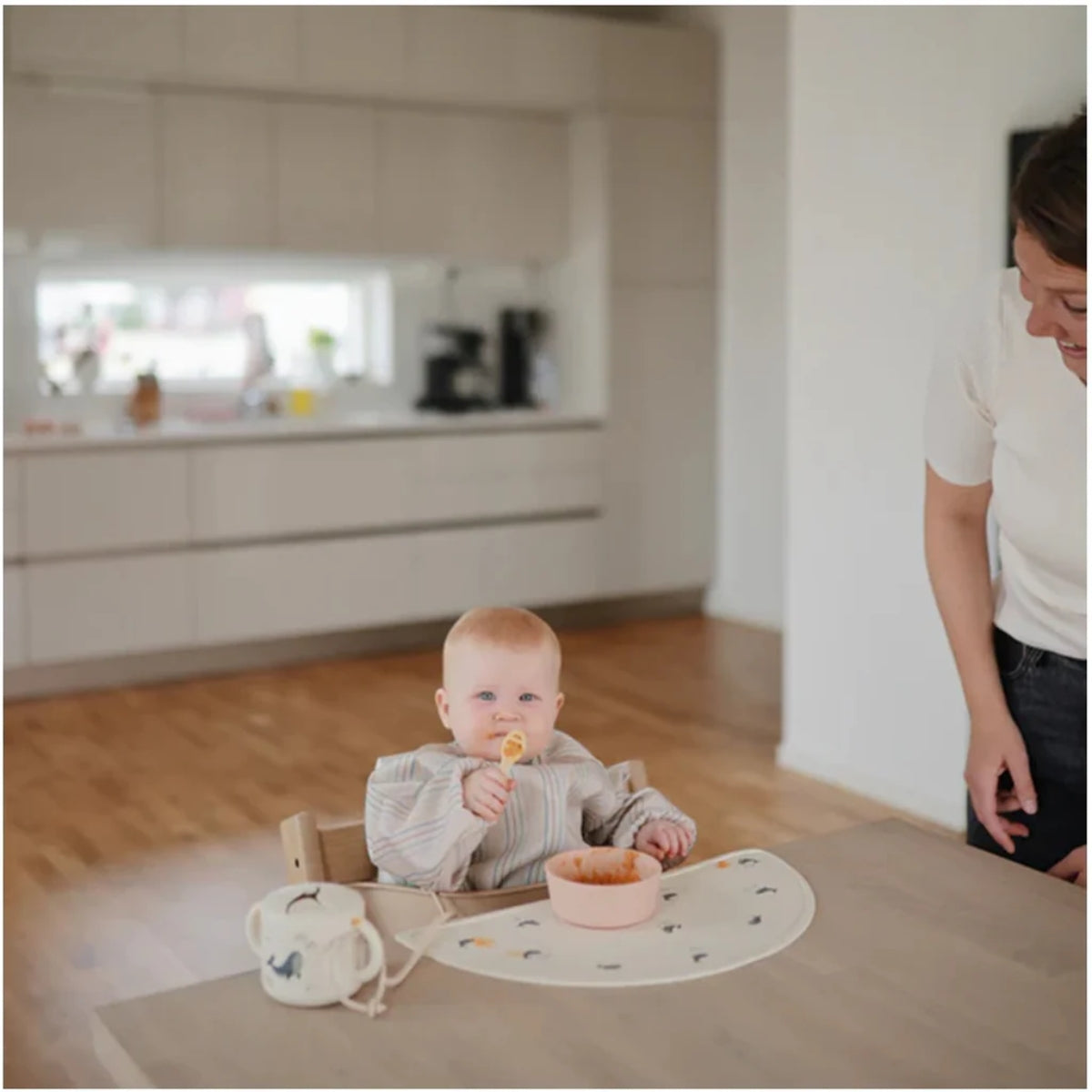 Uma abertura suave garante que as mãos do bebê possam deslizar facilmente para dentro e para fora, mas ainda mantendo os alimentos seguros sem derramar.