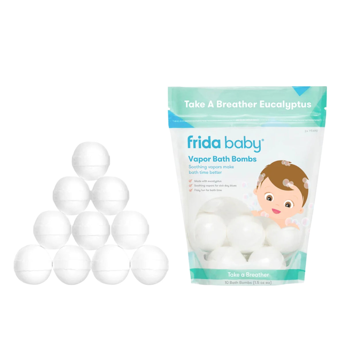 Bombas de banho FridaBaby BreatheFrida Vapor para crianças e adultos, óleos de eucalipto e lavanda, efervescência calmante, alívio da congestão, conforto para resfriados e gripes.