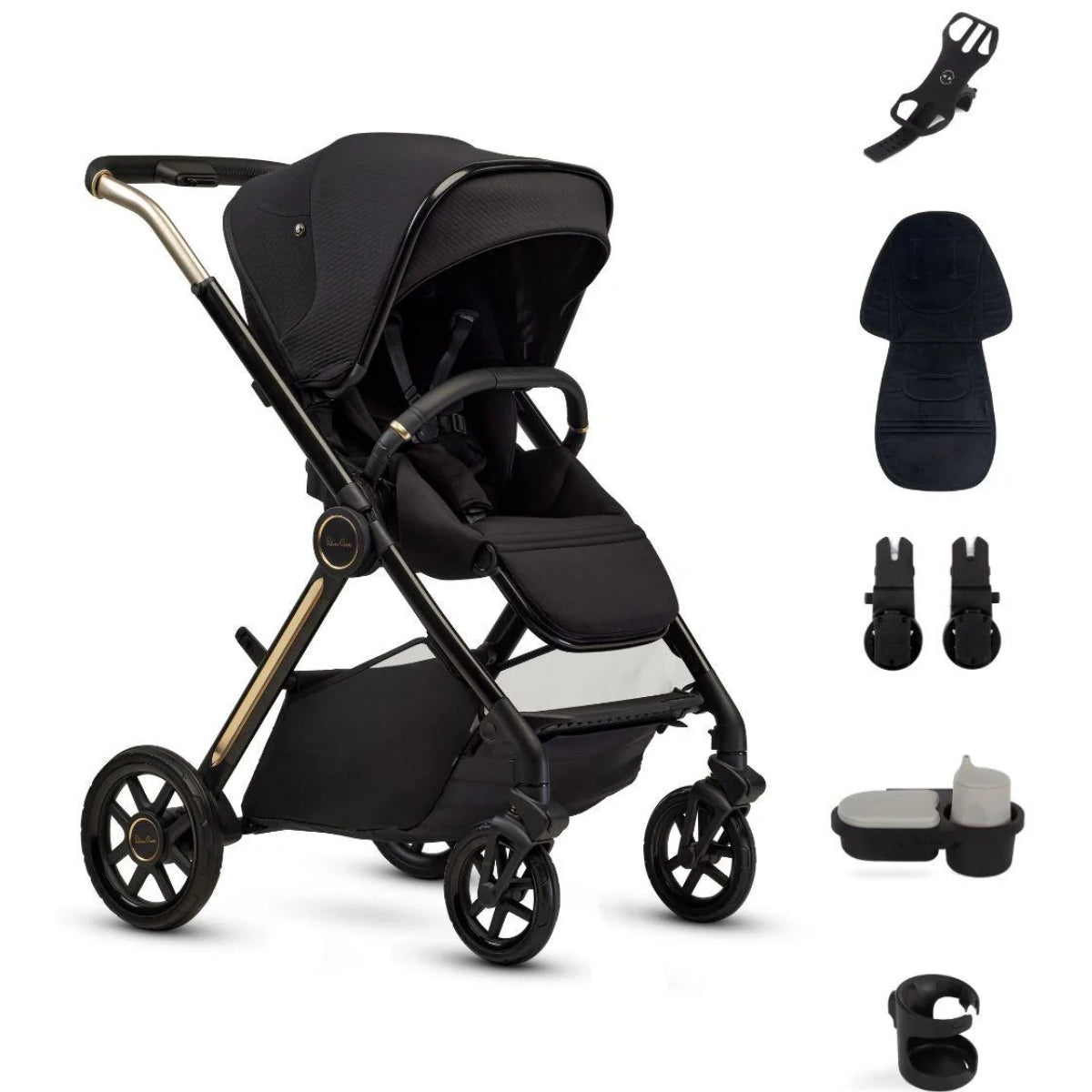 Be ready for every adventure with baby with this exclusive Silver Cross bundle that includes the NEW Silver Cross Reef 2 Stroller in Espresso, Car Seat Adapters, Cup Holder, Phone Holder, Seat Liner, Snack Tray and Rain Cover.